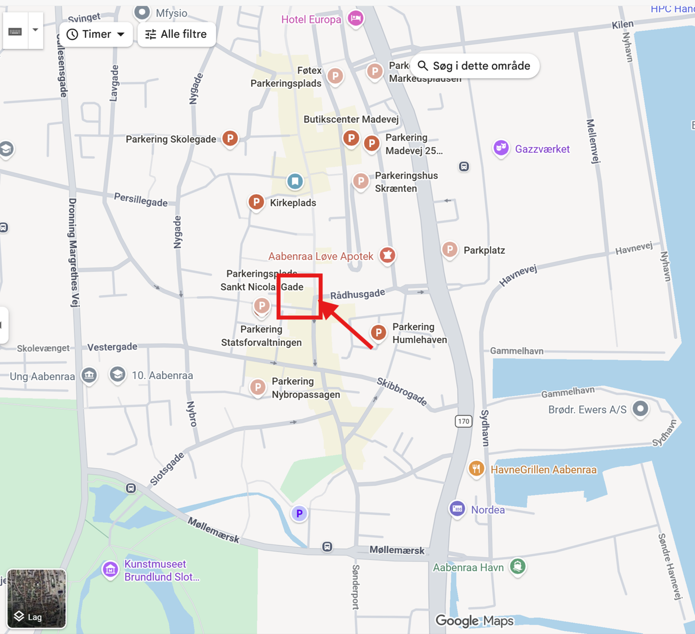 Alle parkeringspladser ligger centralt og i kort gåafstand til Det Gamle Rådhus.